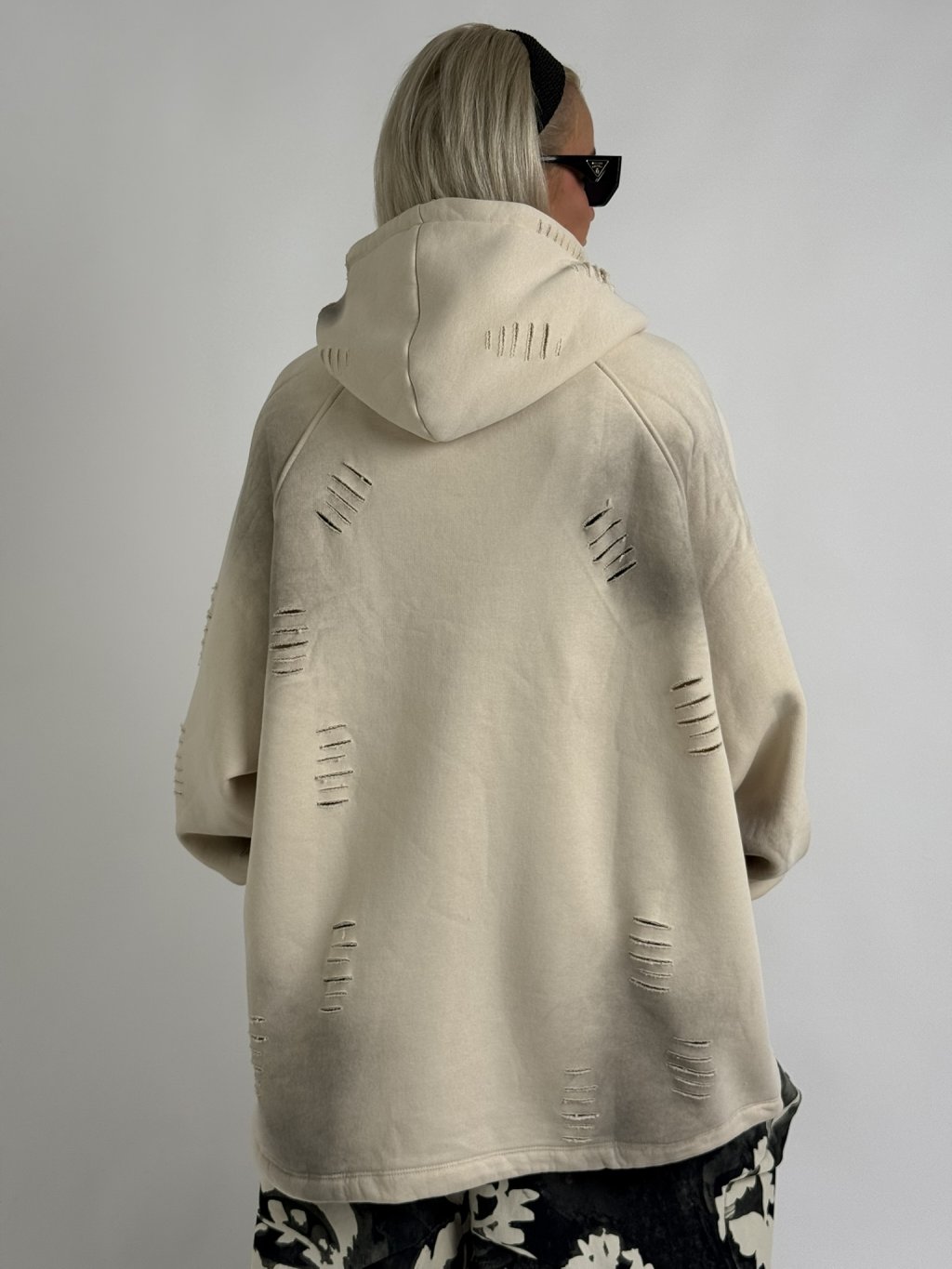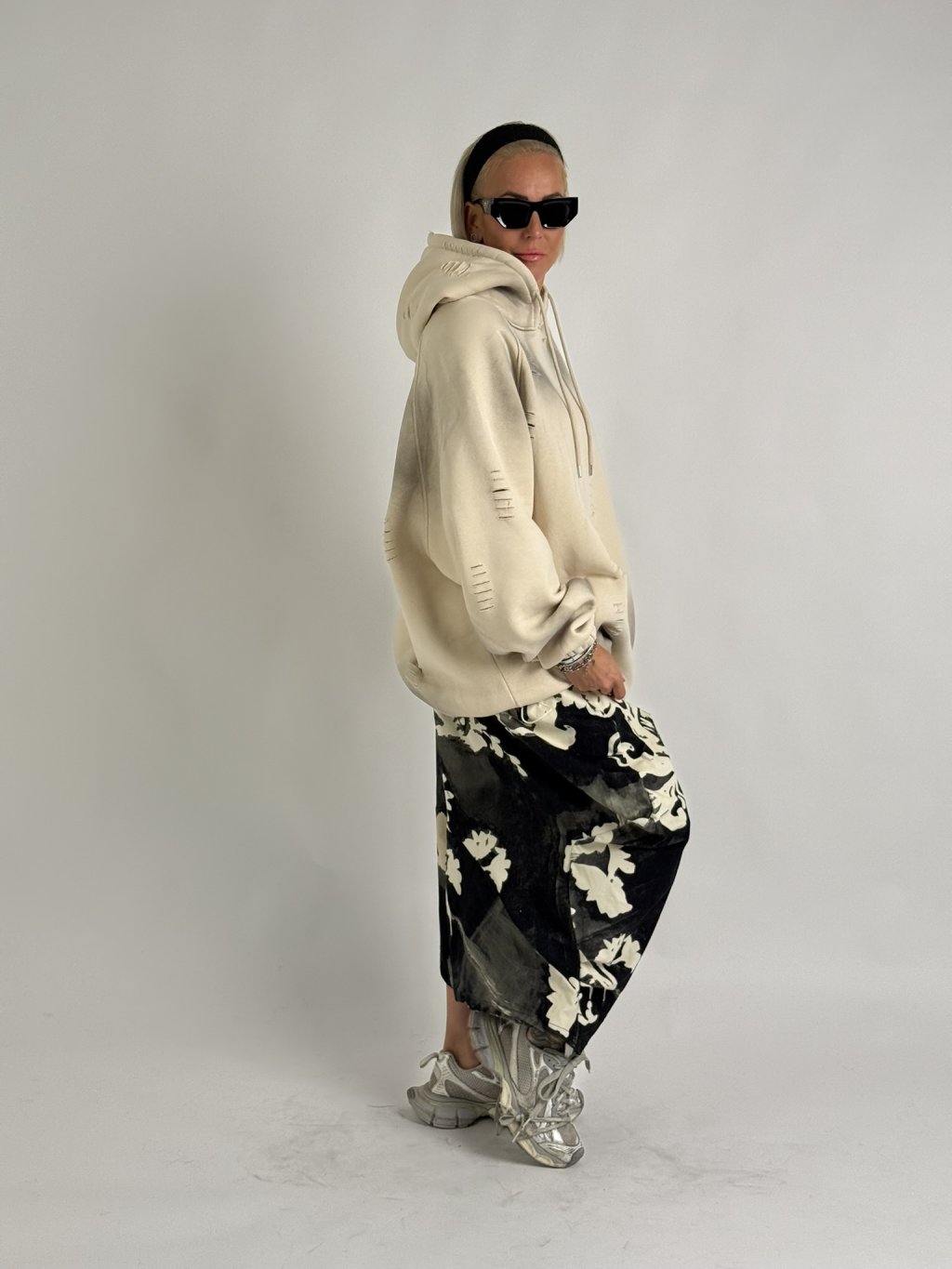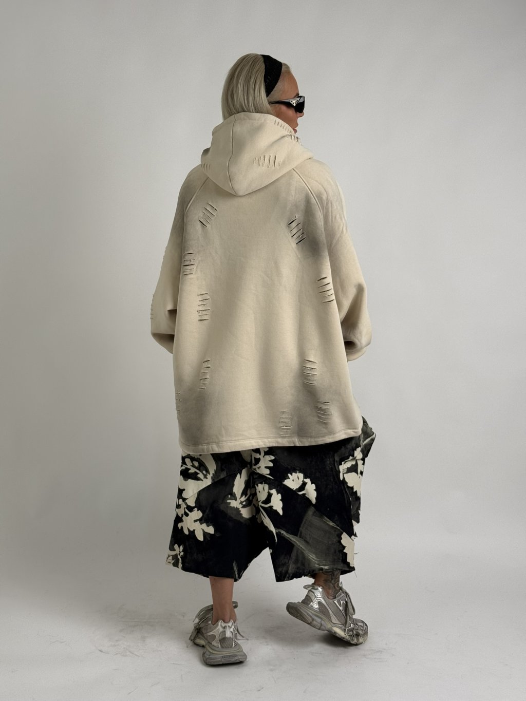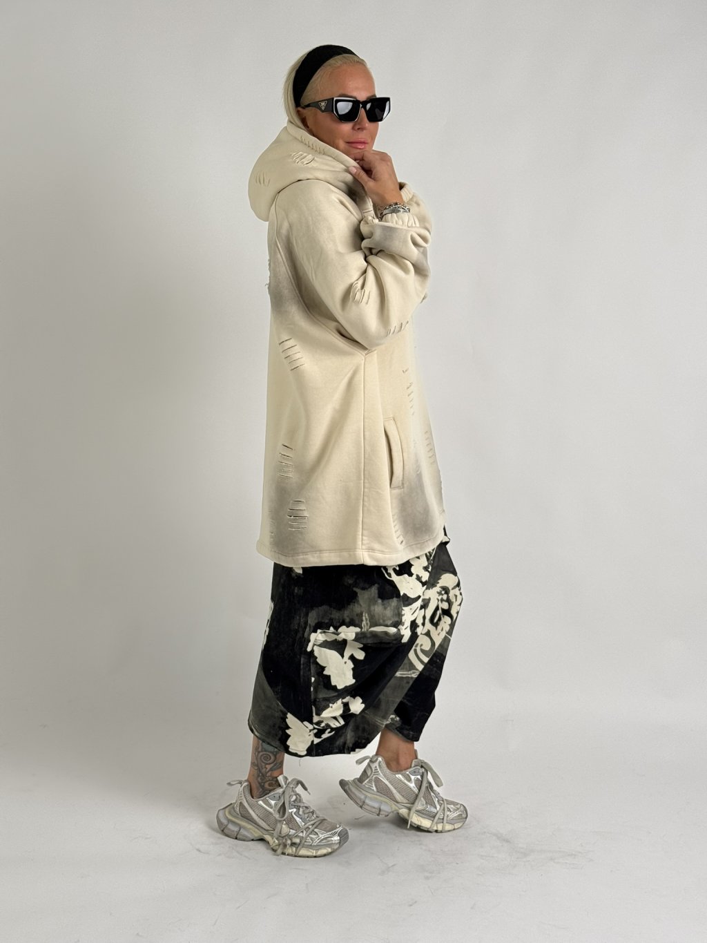 Super, oversize, delší mikina s průstřihy, kapsami na předním dílu, v dolní části na stažení.
