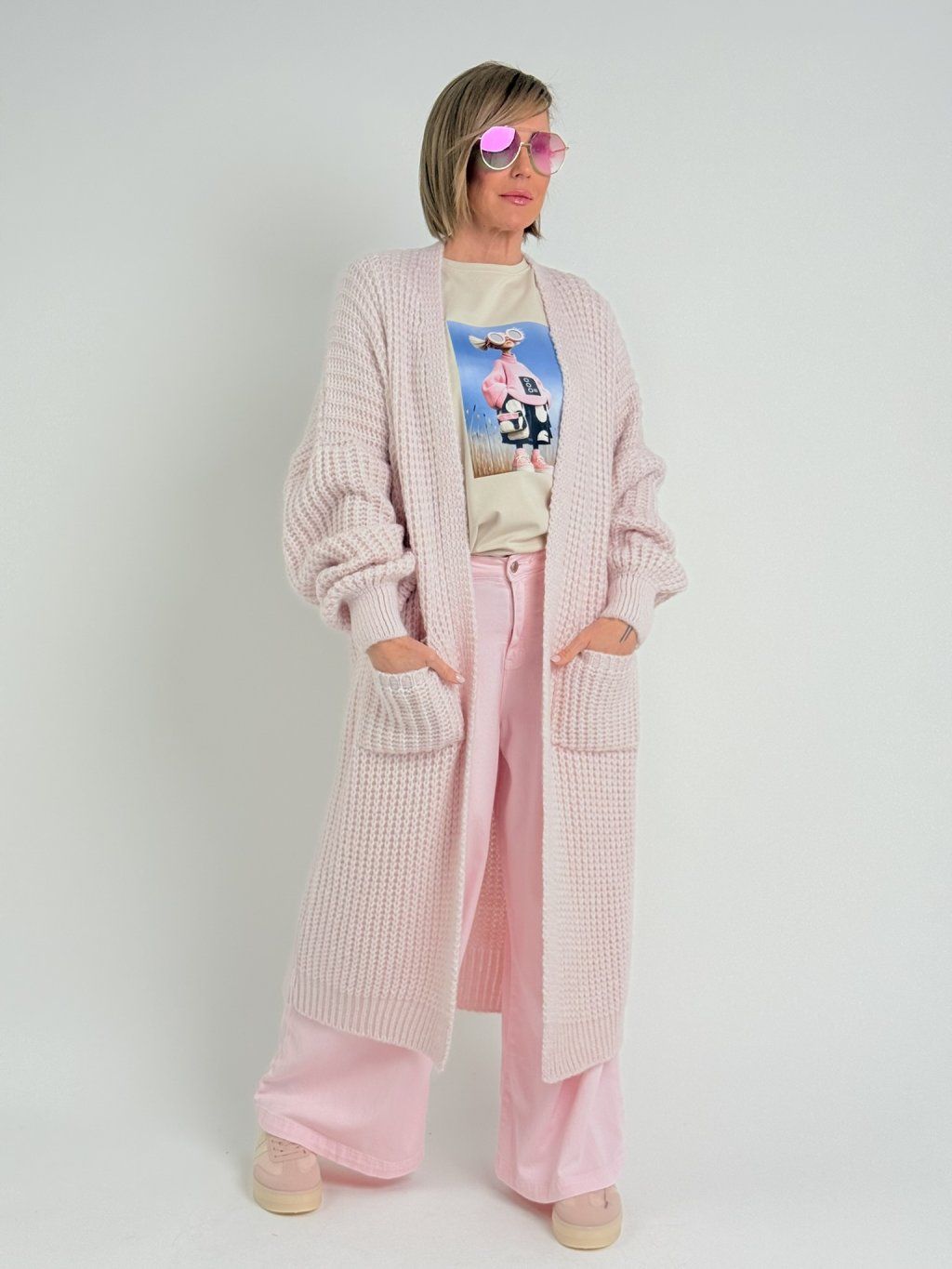 ONE SIZE, sedí na S-XL (šířka přes prsa 61 cm, délka 59 cm, délka rukávu 42 cm)