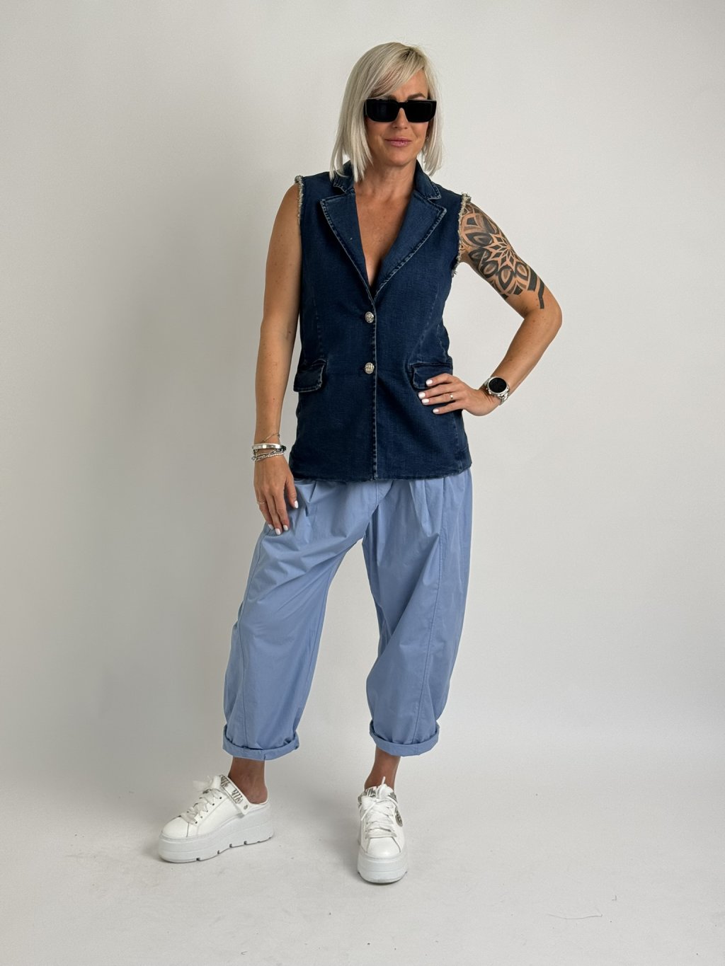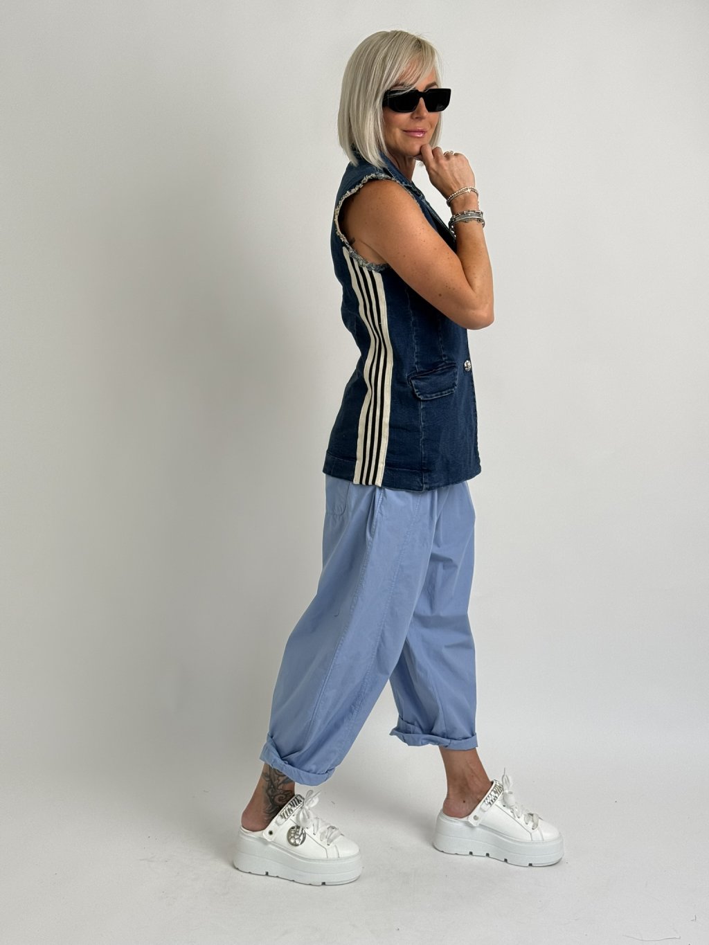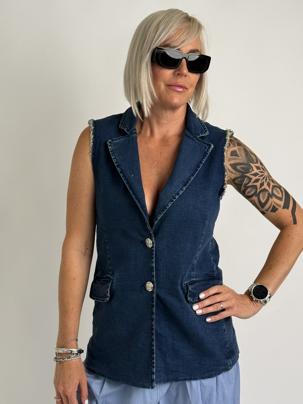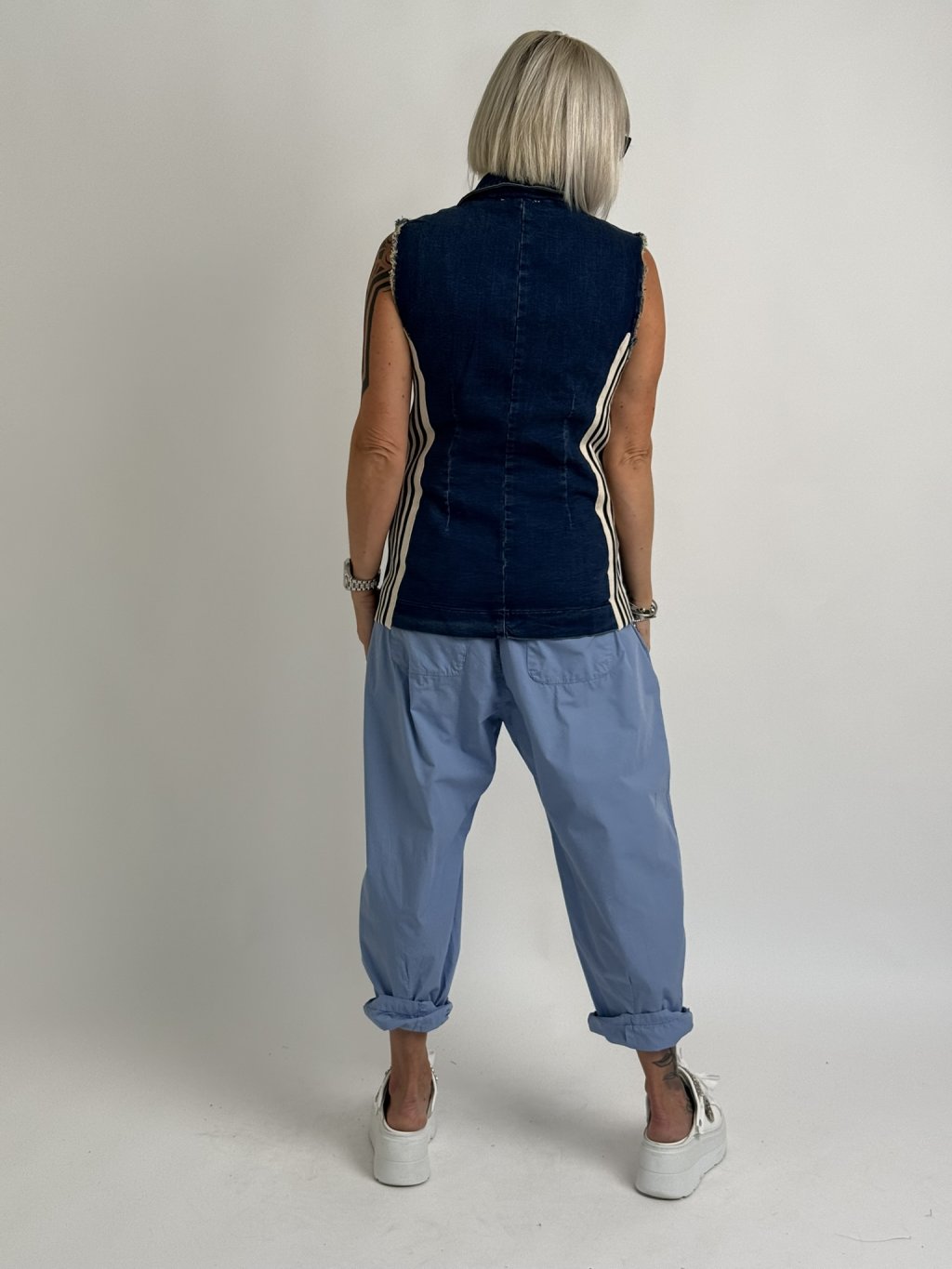 Úžasný a originální kousek, zajímavě řešená vesta se zapínáním na knoflíky, s límcem a po straně lampasy Vypadá skvěle na triko i košili.