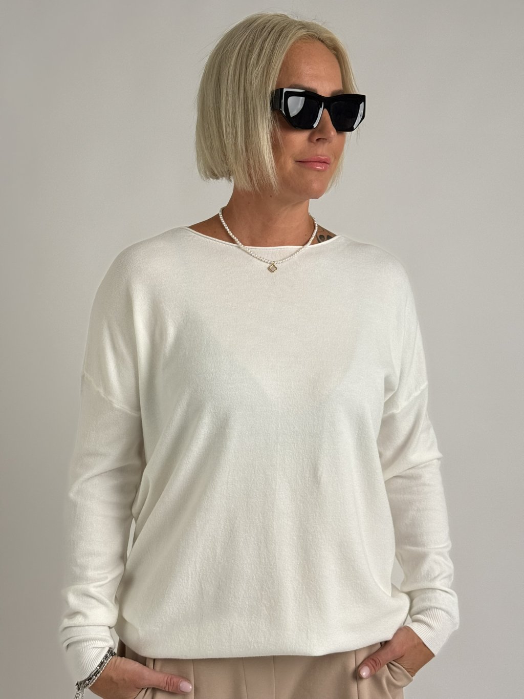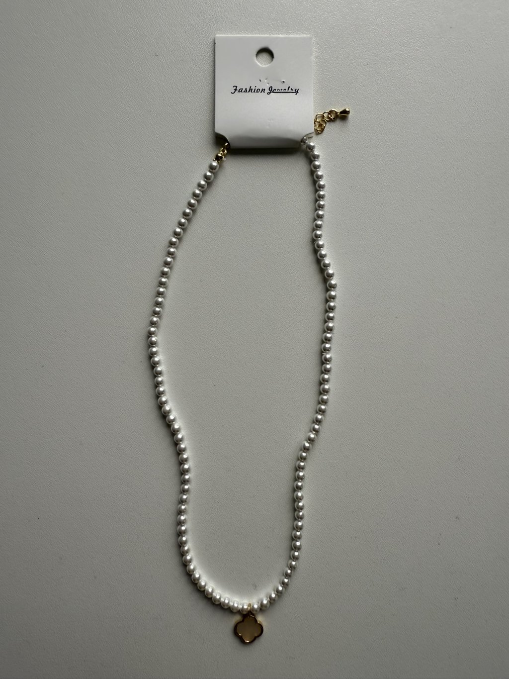 Nádherný, bílý, krátký náhrdelník se čtyřlístkem.