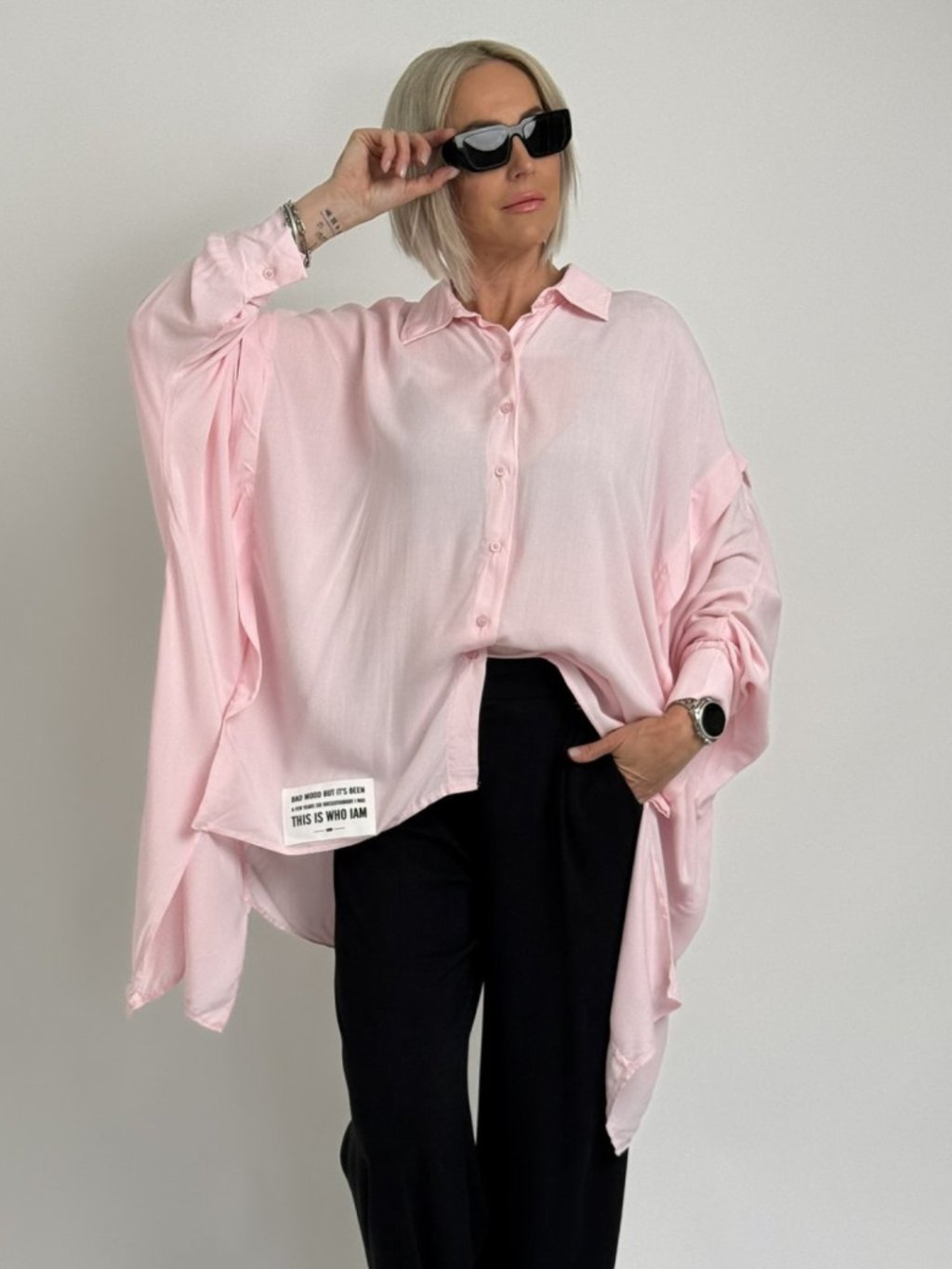 Lehká, oversize košile v netopýřím střihu, s dlouhým rukávem. Krásná do každého outfitu.