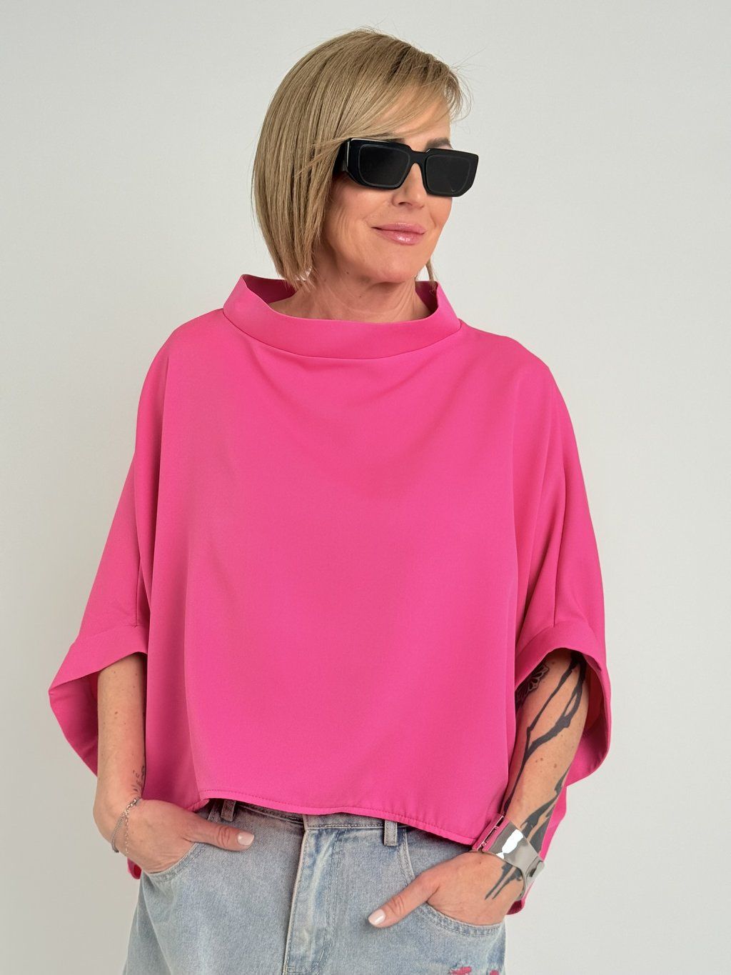 Luxusní tunika v netopýřím střihu s širokým stojáčkem. Vhodná na vrstvení.