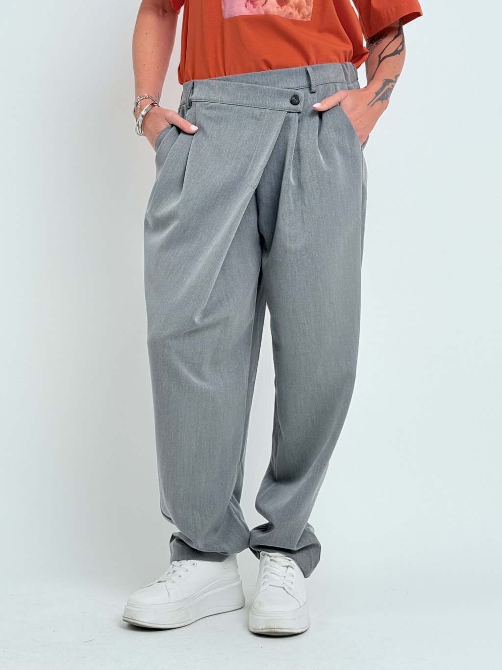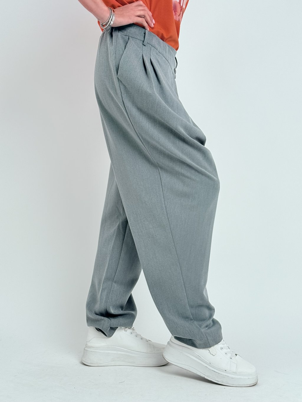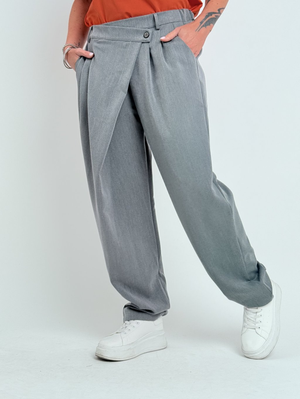 Pohodlné, zajímavé kalhoty, vpředu s překladem, vzadu v pase s gumou.