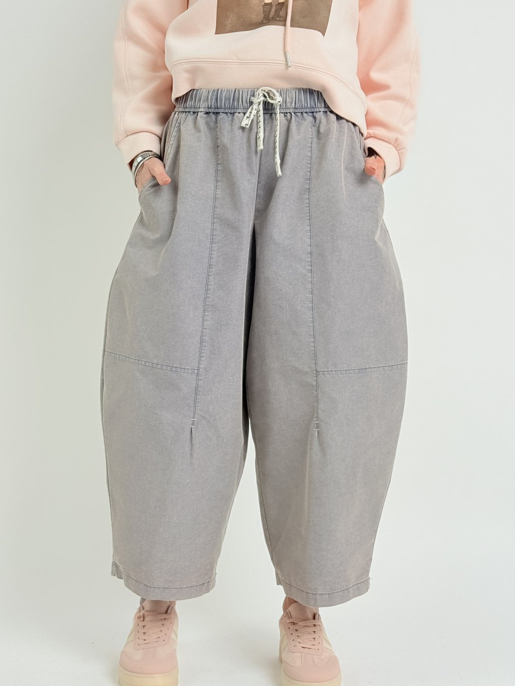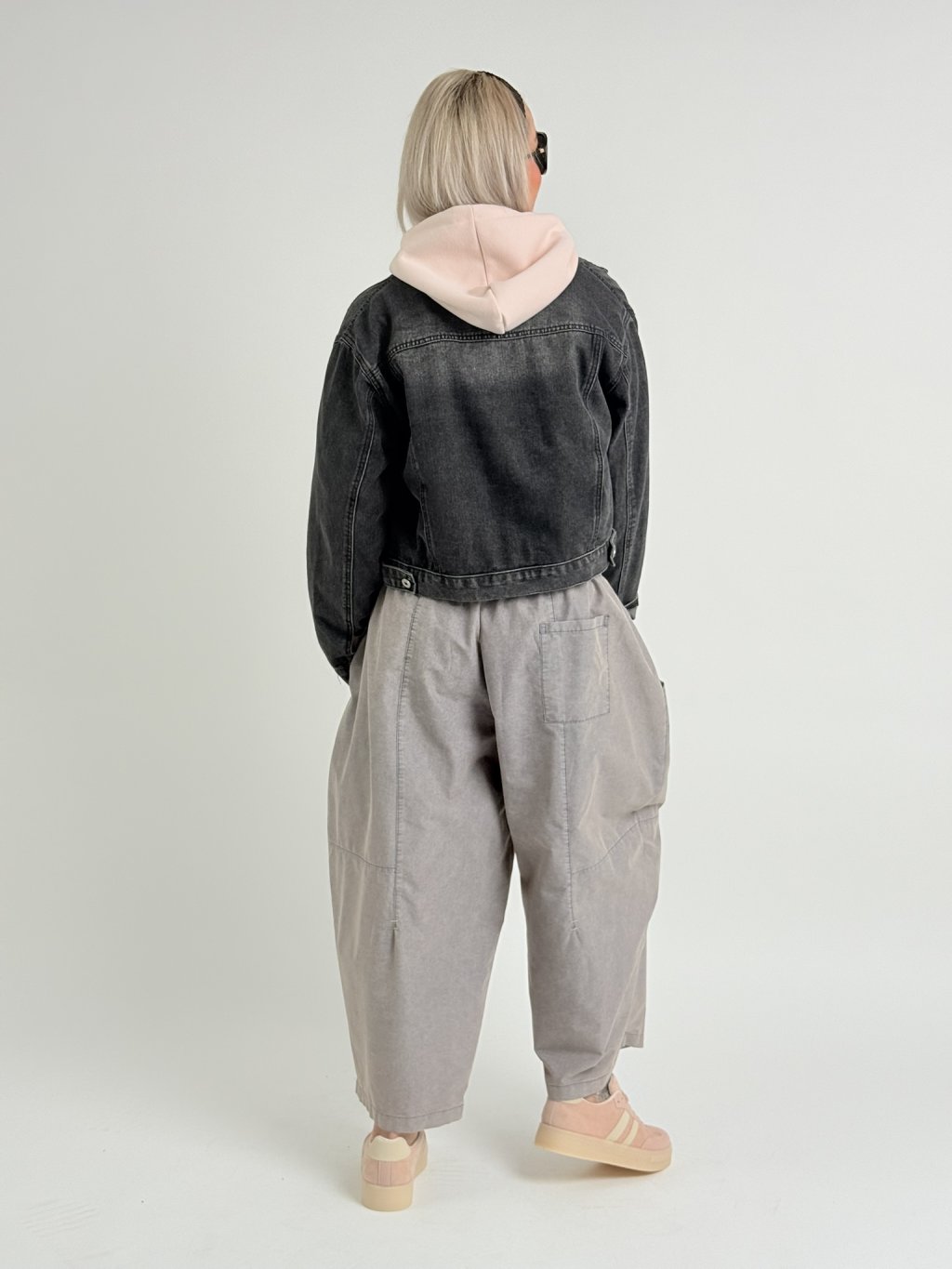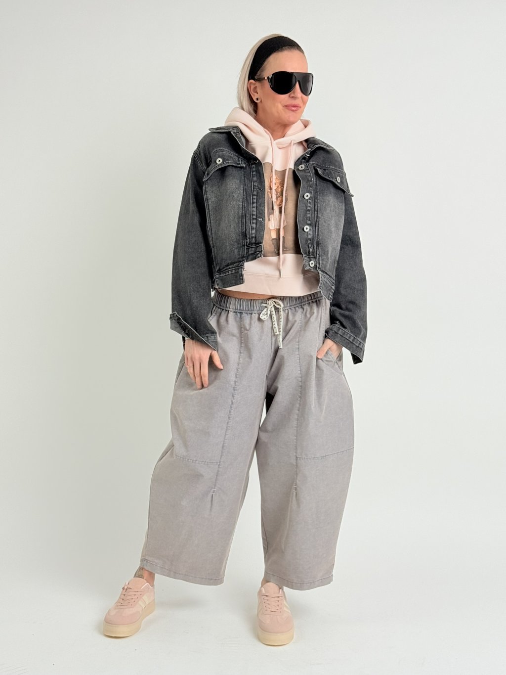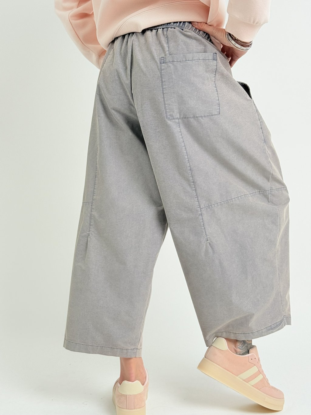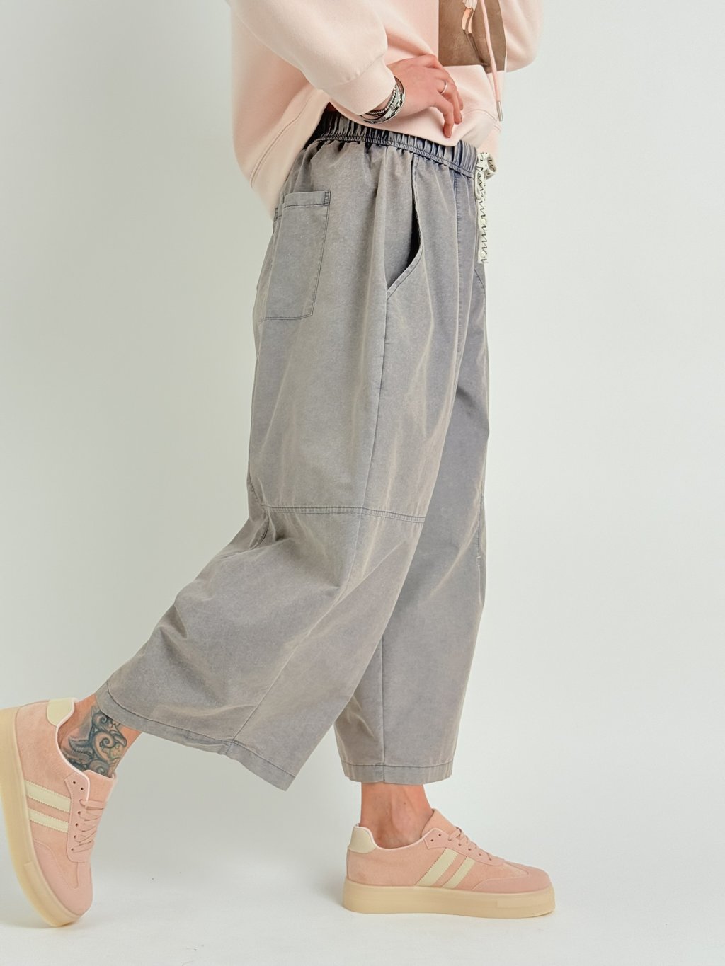 7/8 kalhoty v balonovém střihu, v pase do gumou a tkanicí na stažení, s postranními kapsami, vzadu s jednou kapsou..