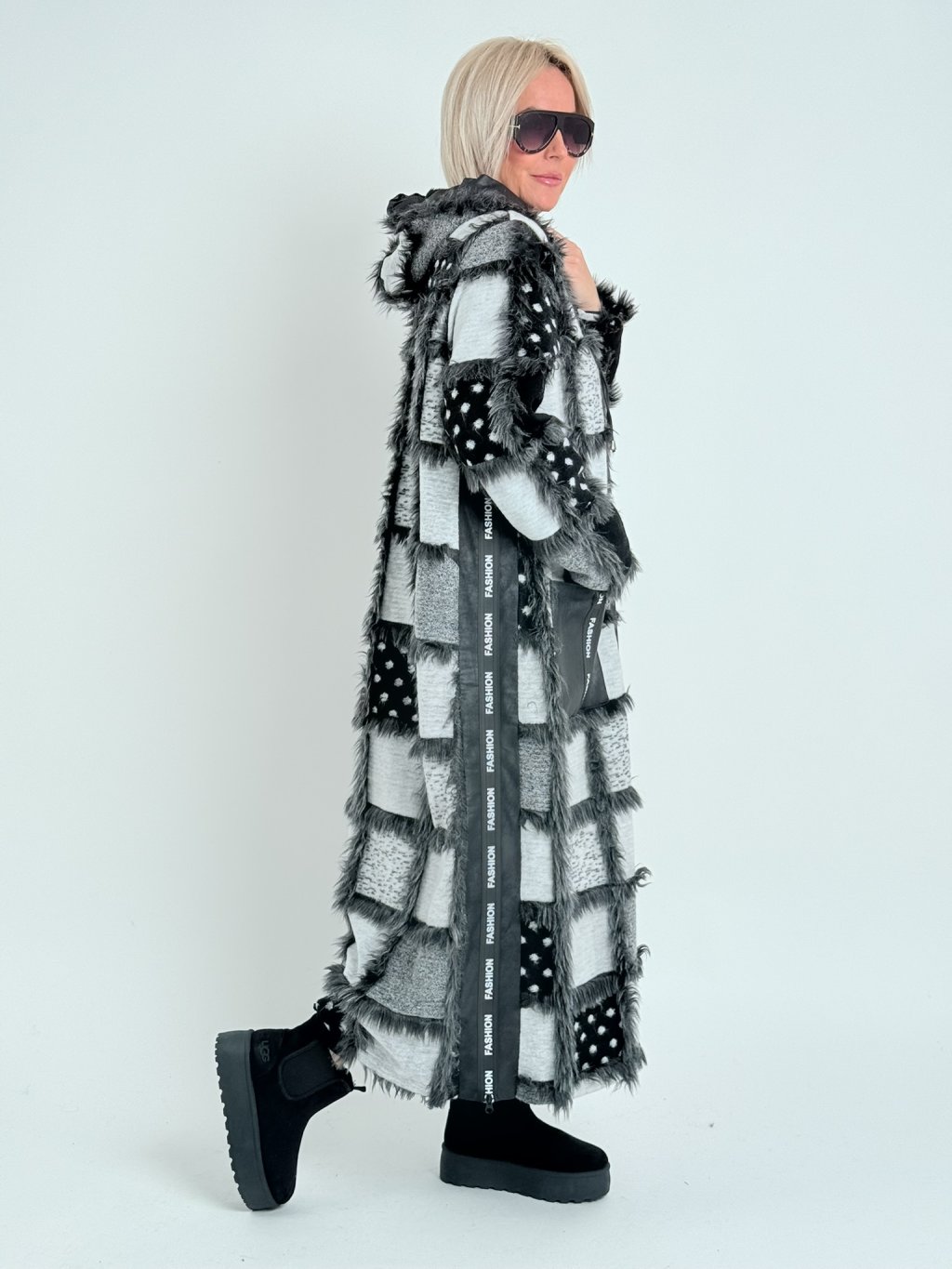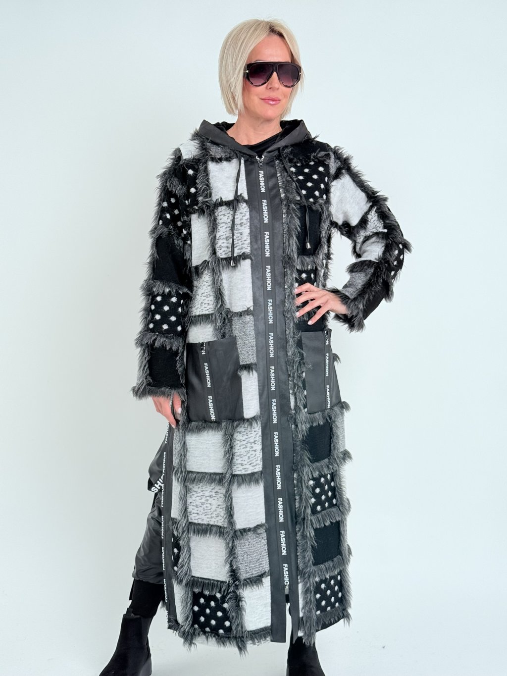 Nádherný, nadčasový, extravagantní kabát s kapucí, s plyšovou podšívkou, Kabát se zapíná na zip, ty jsou i po obou stranách a končí v podpaží. Budeš nepřehlédnutelná!!!