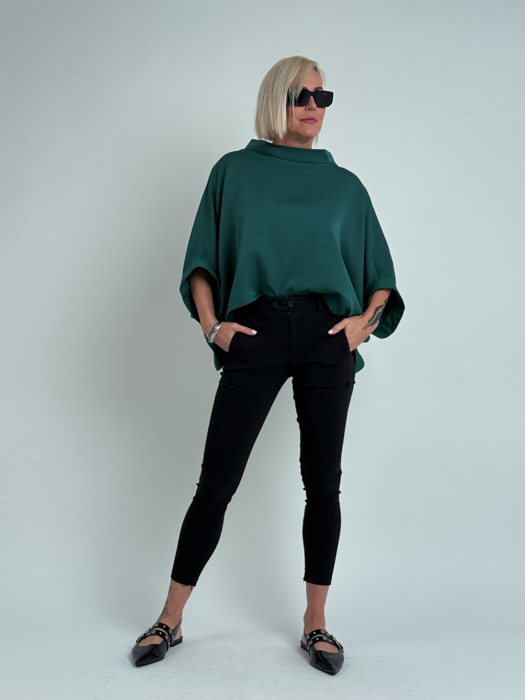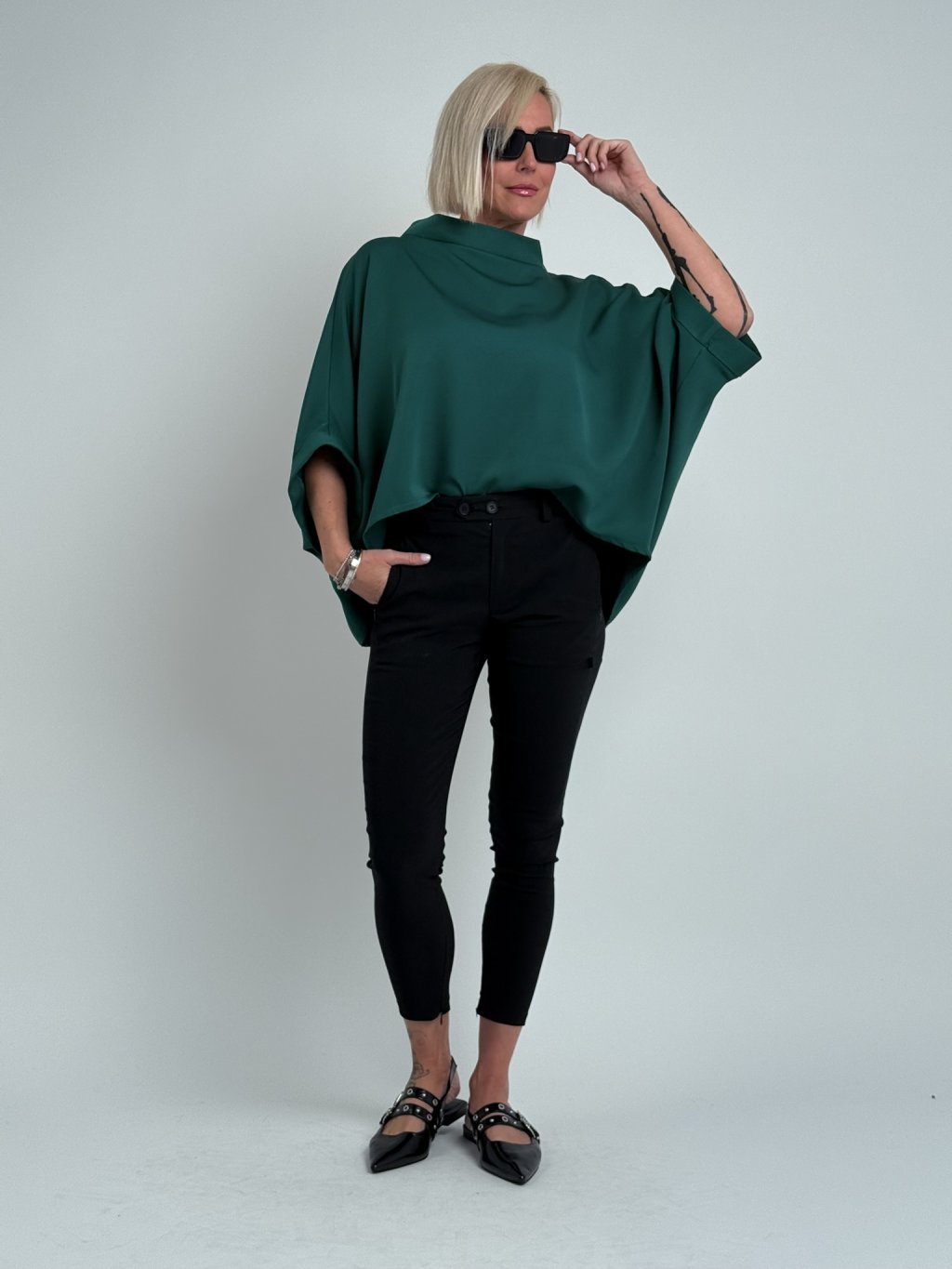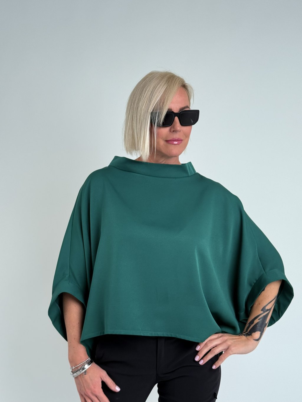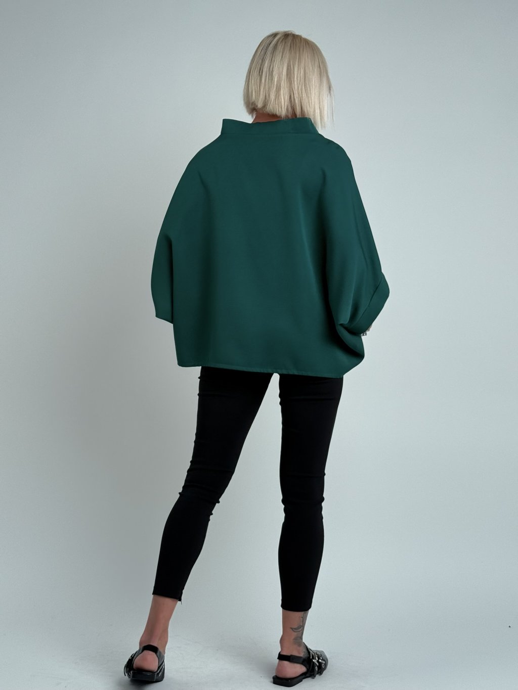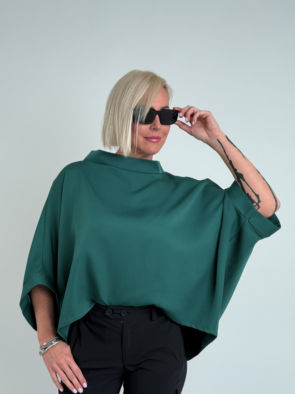 Luxusní tunika v netopýřím střihu s širokým stojáčkem. Vhodná na vrstvení.