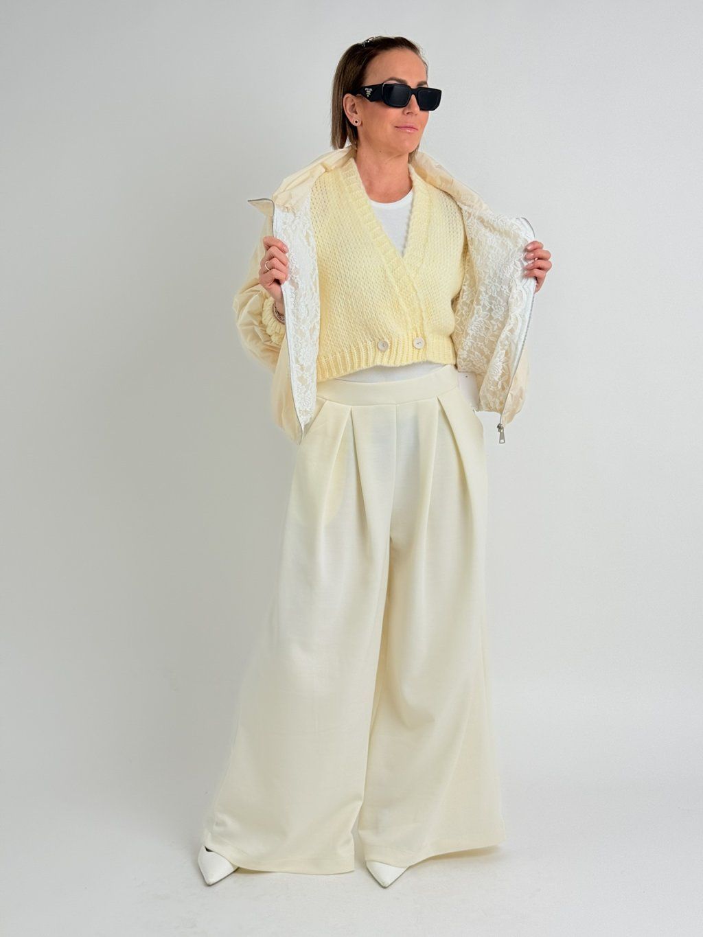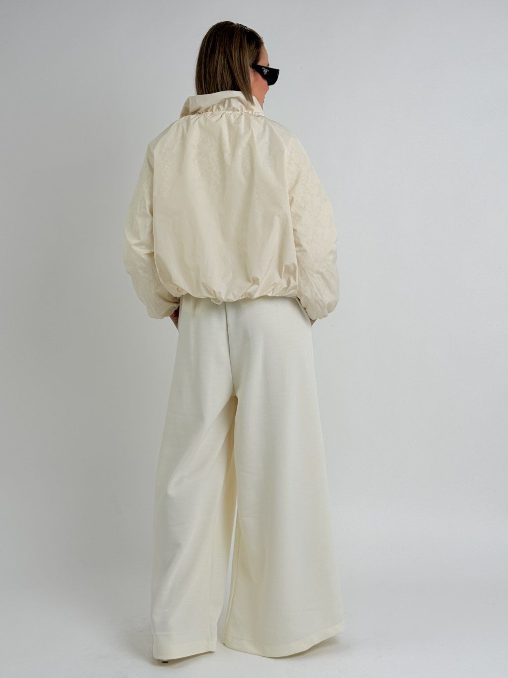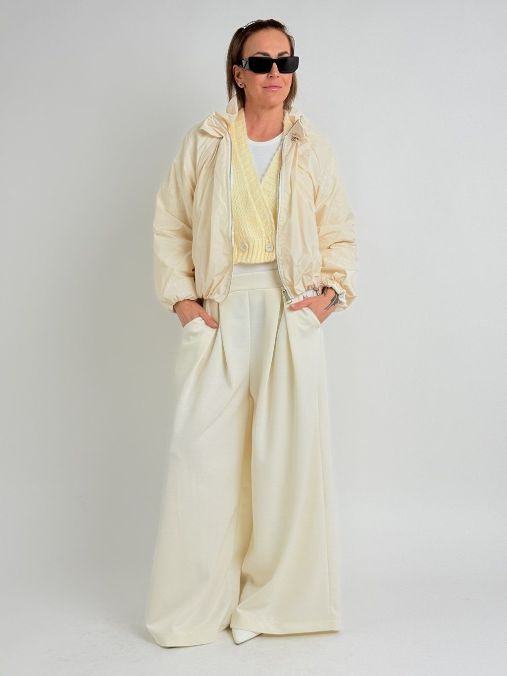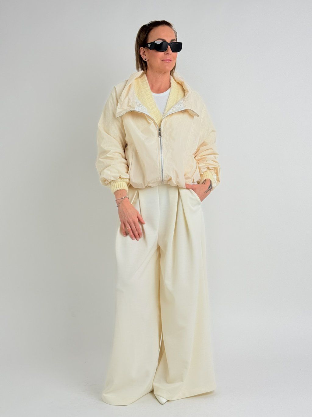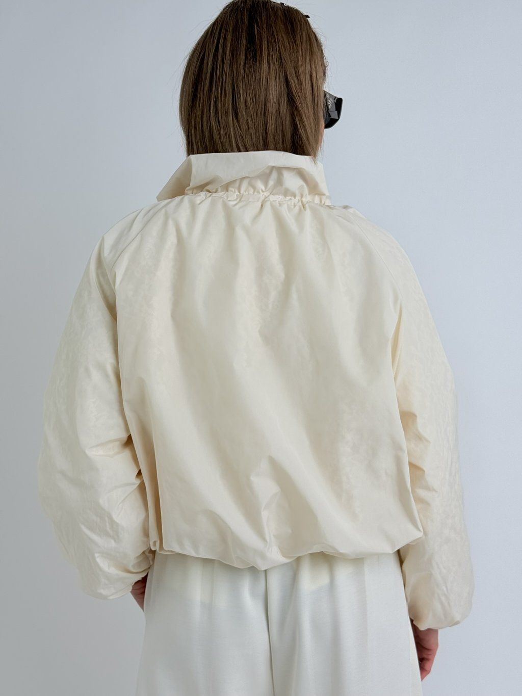 Šusťáková bundička s krajkovanou podšívkou, se zapínáním na zip, límcem na stažení. Konce rukávů a spodní díl je do gumy