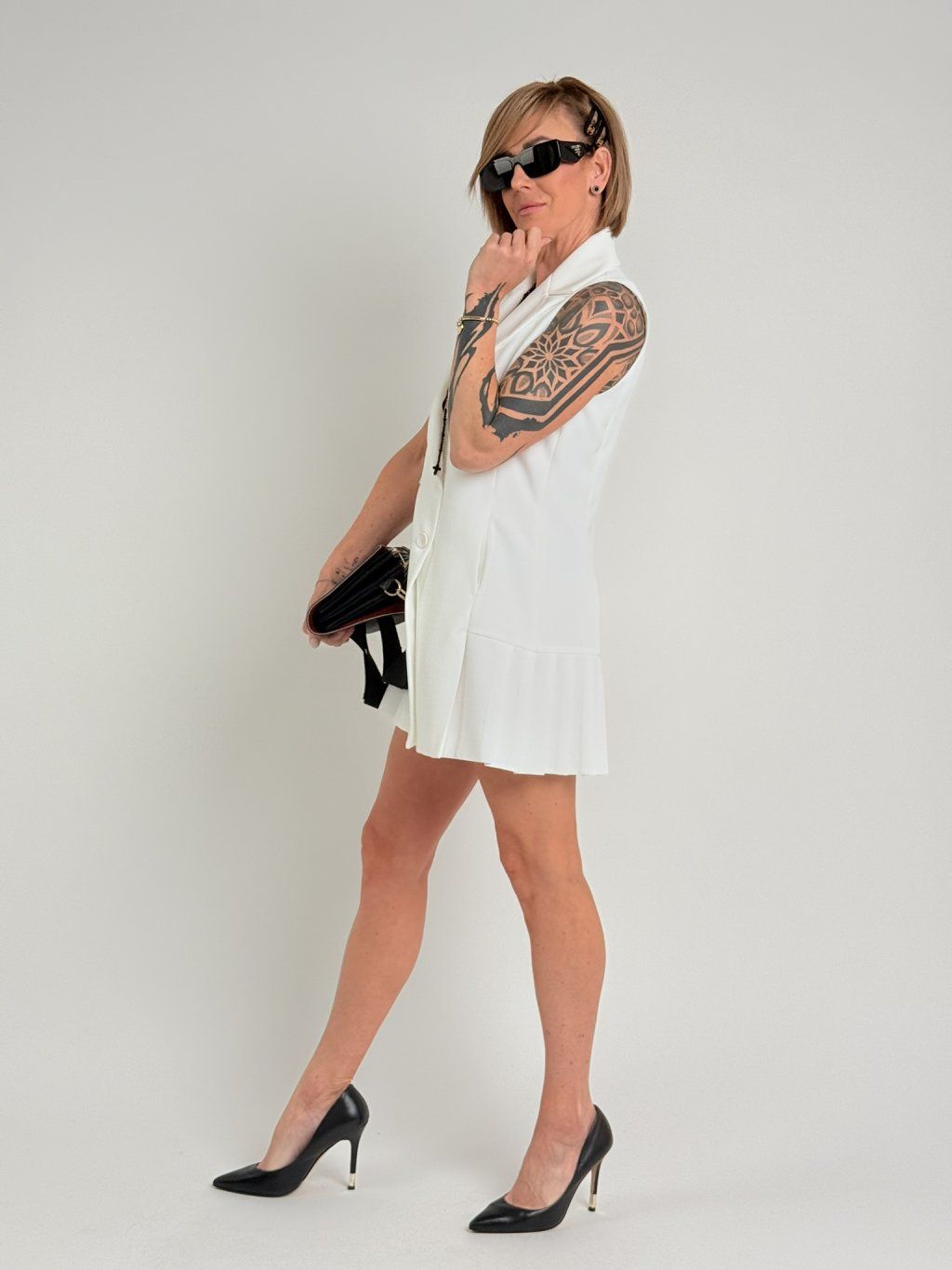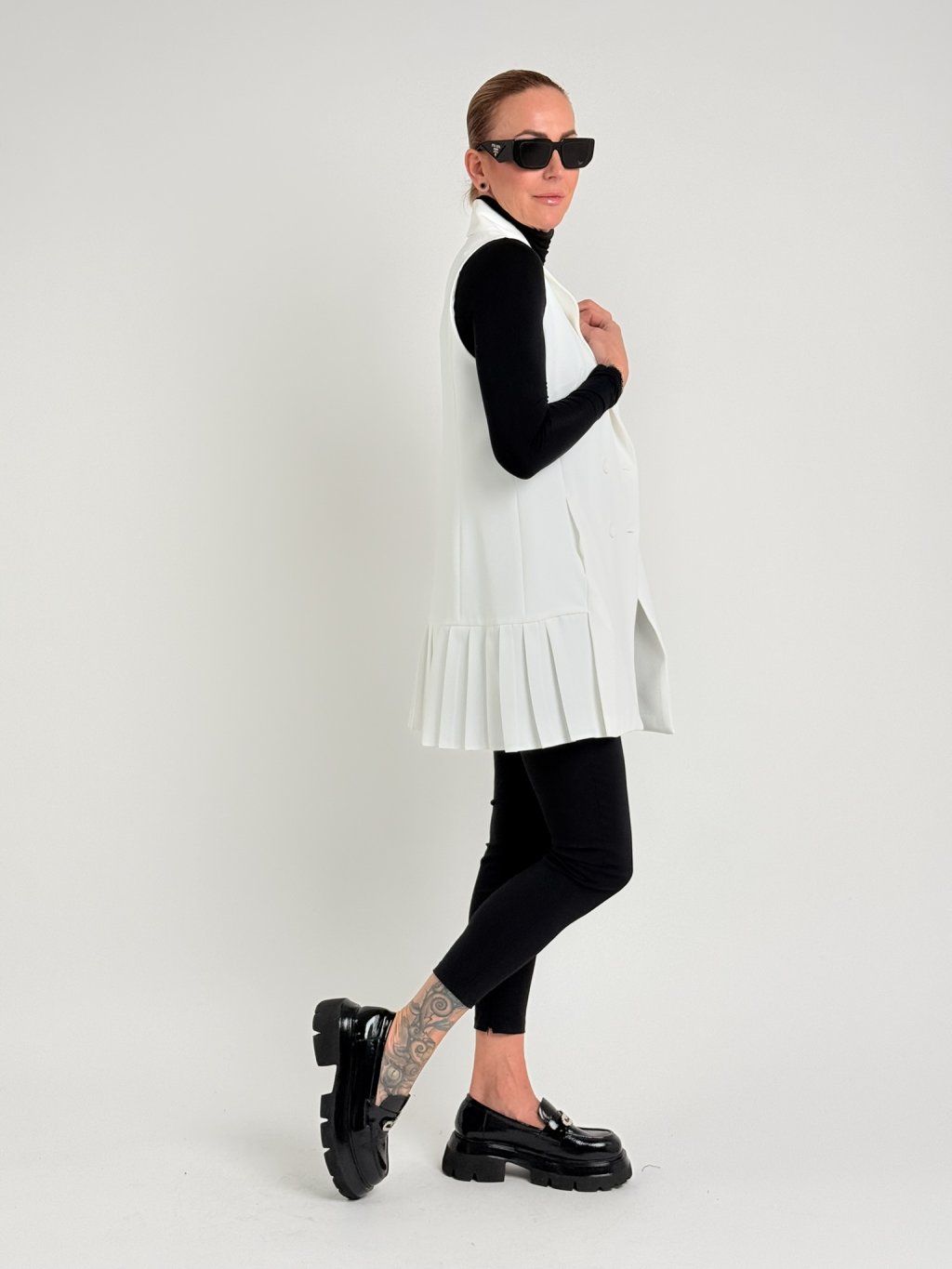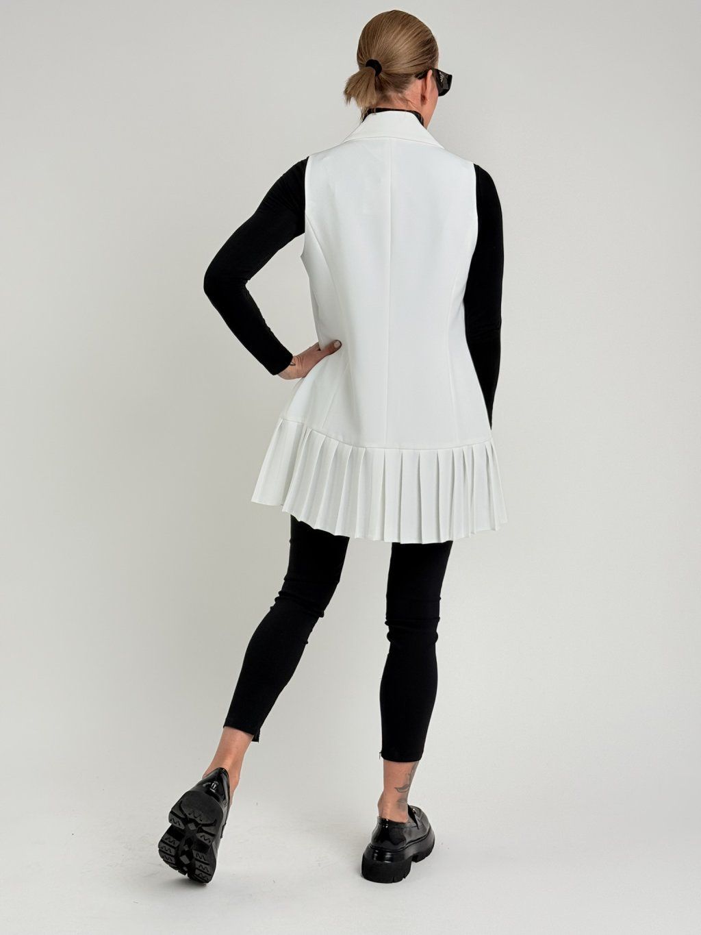 Nádherná vesta s dvouřadým zapínáním a sklady u dolního okraje. Lze nosit jako vestu nebo šaty.