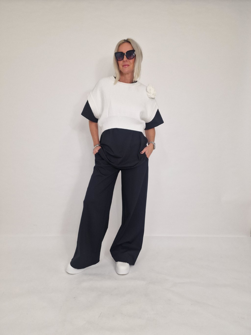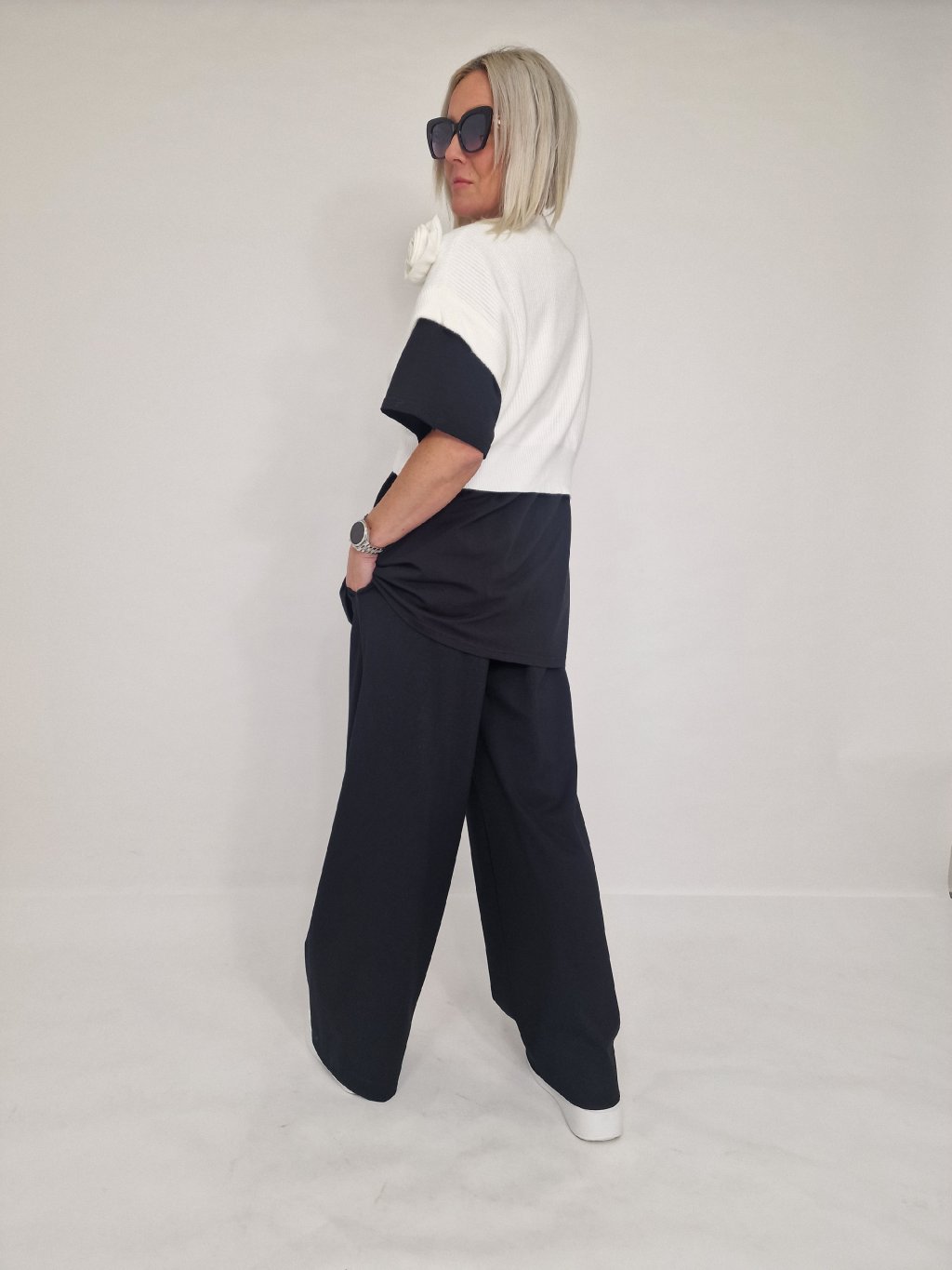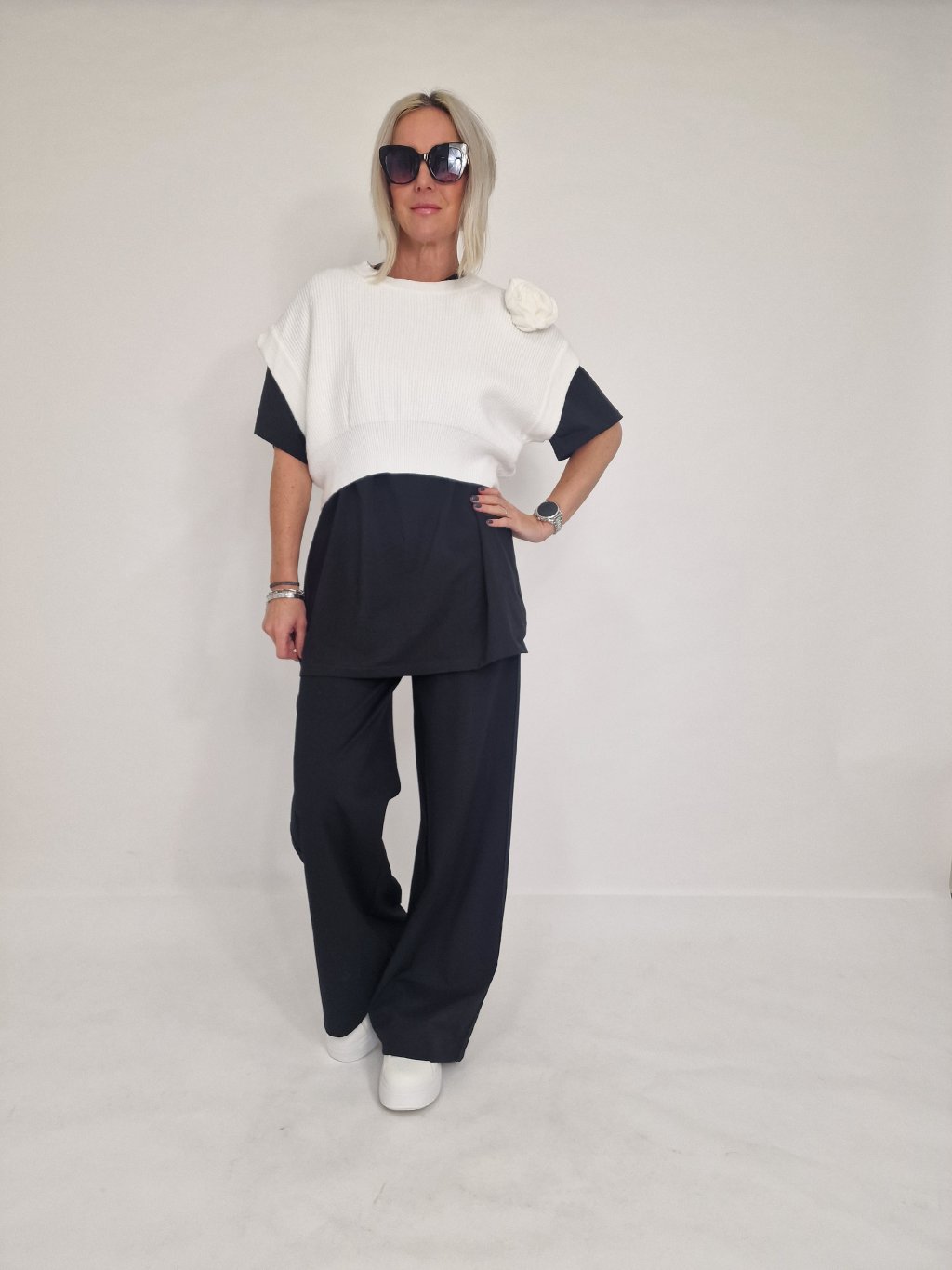 Skvělá, krátká vesta se spadlým rukávem ,aplikací květu, která se dá nosit na mnoho způsobů. Samostatně, na tričko, dlouhé triko, košili nebo pencil šaty.