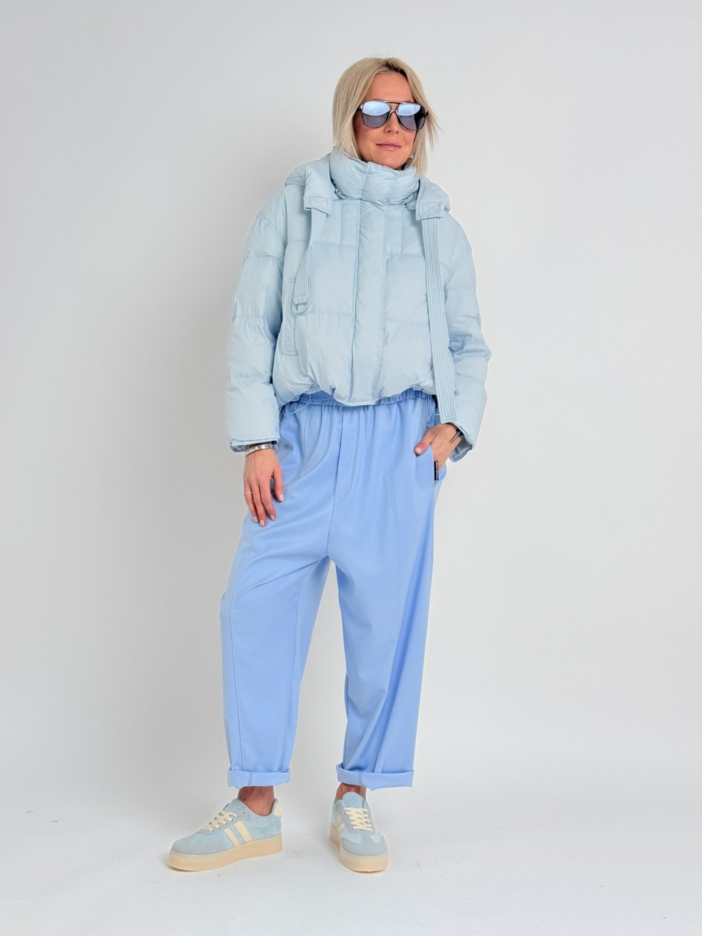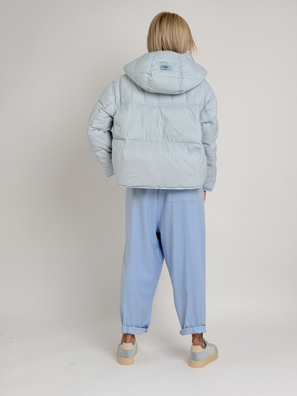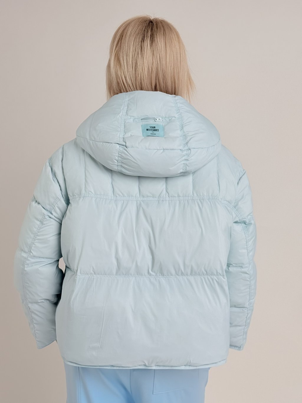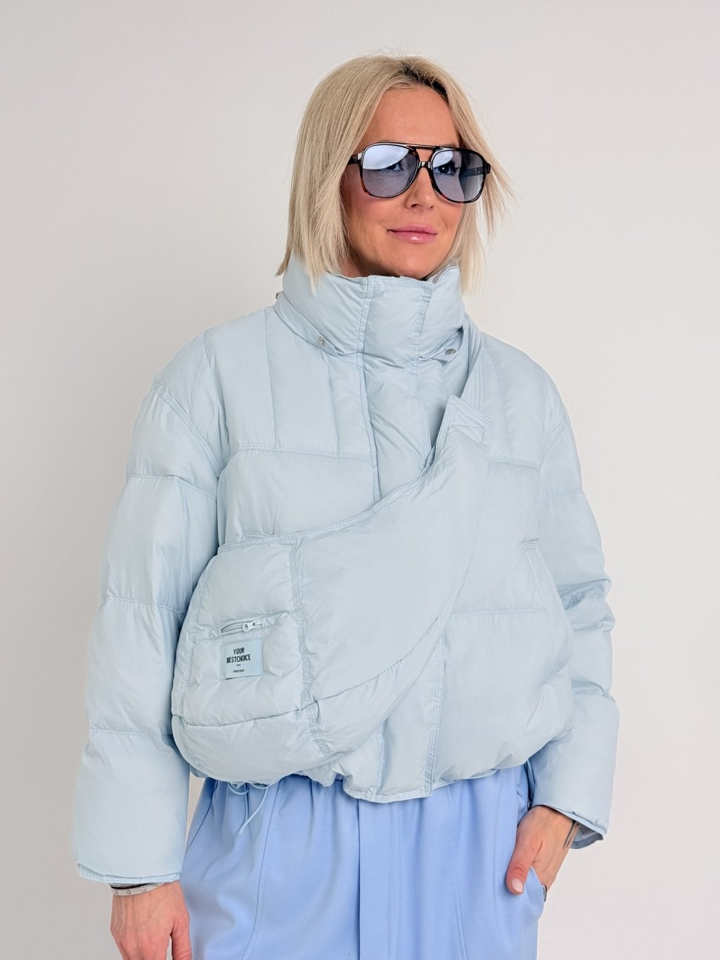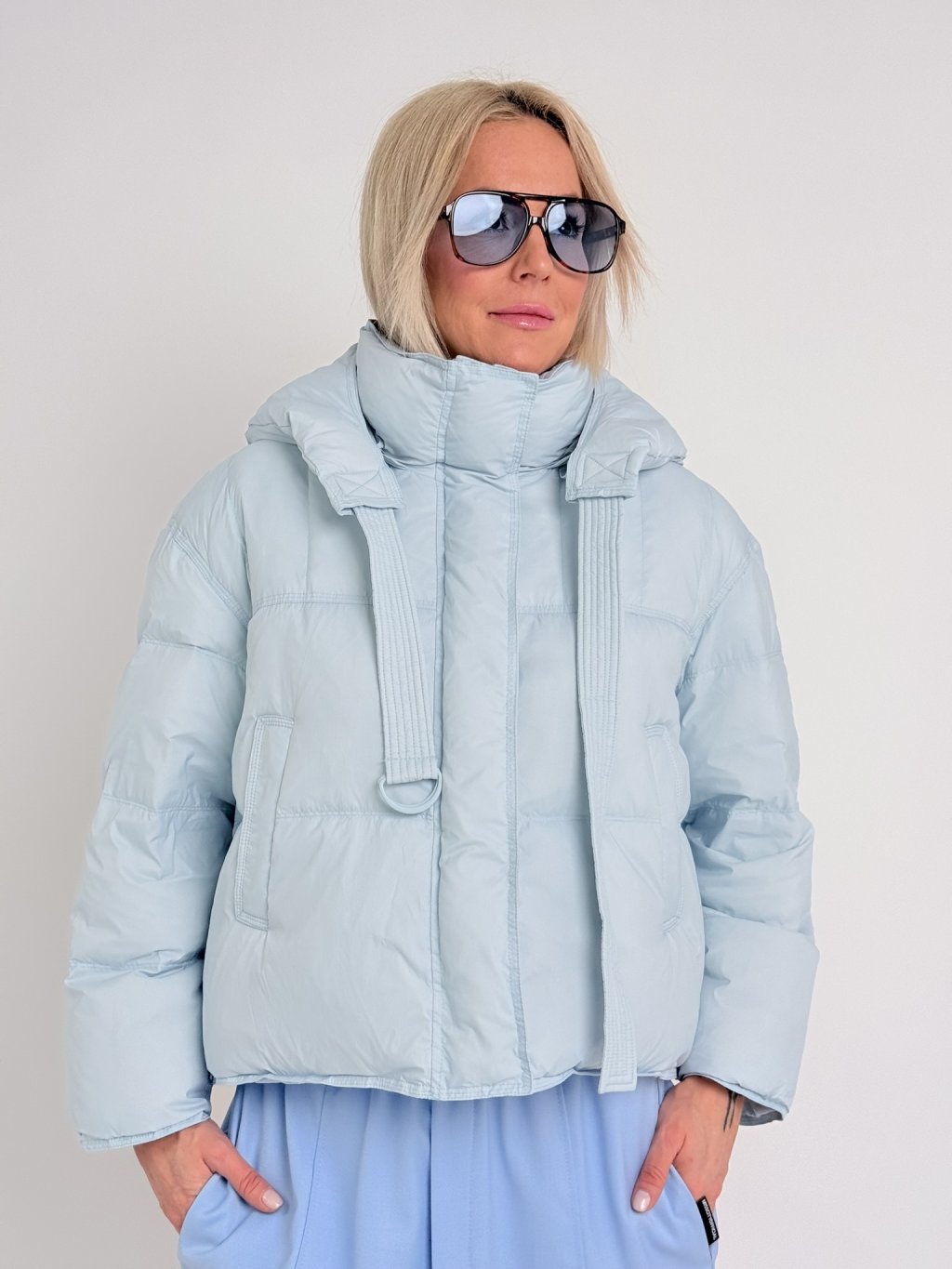 Super, lehká, prošívaná bunda s dolním krajem na stažení a  kapucí, kterou lze nosit jako ledvinku.