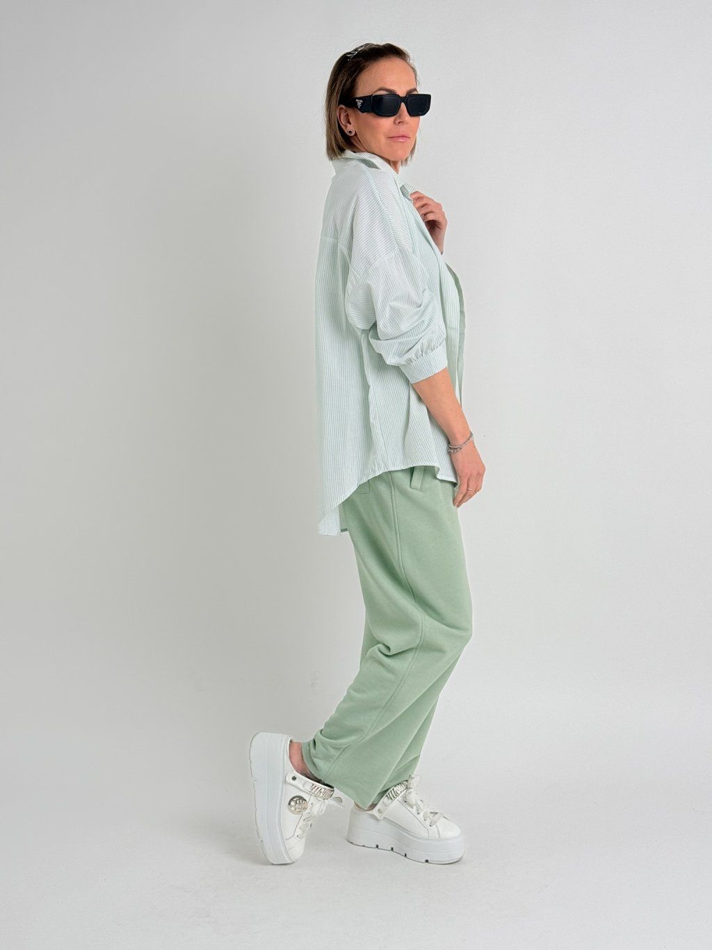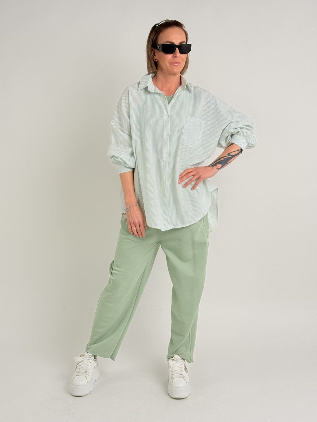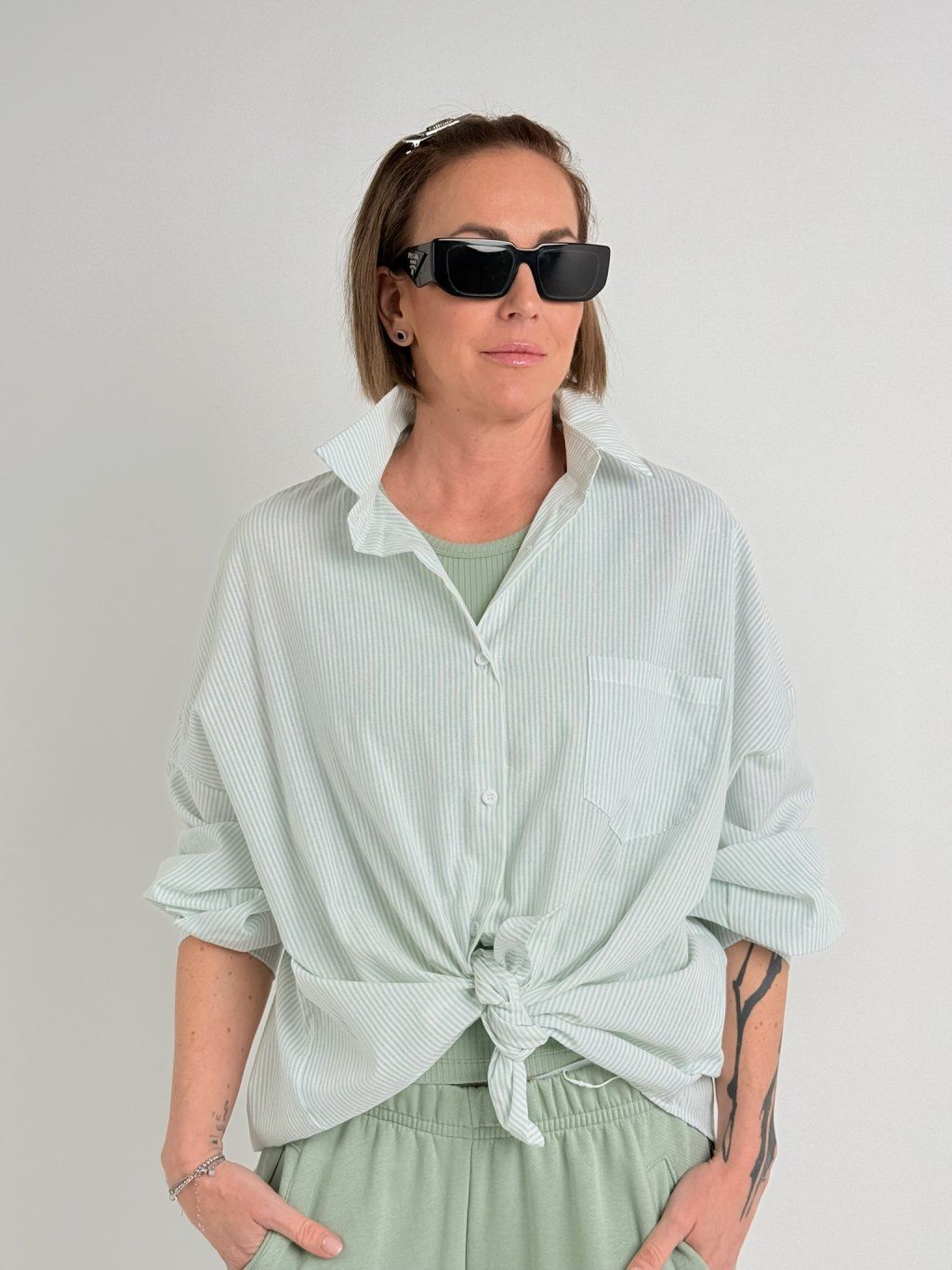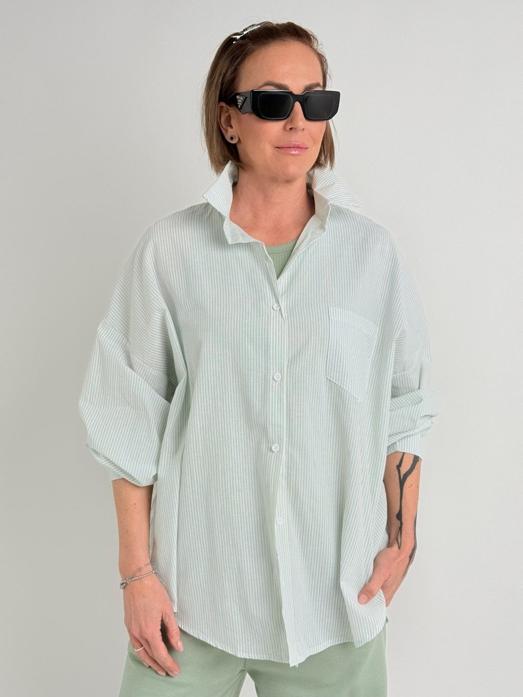 Lehká, oversize košile s jemným proužkem, s límečkem a se zapínáním na knoflíky.