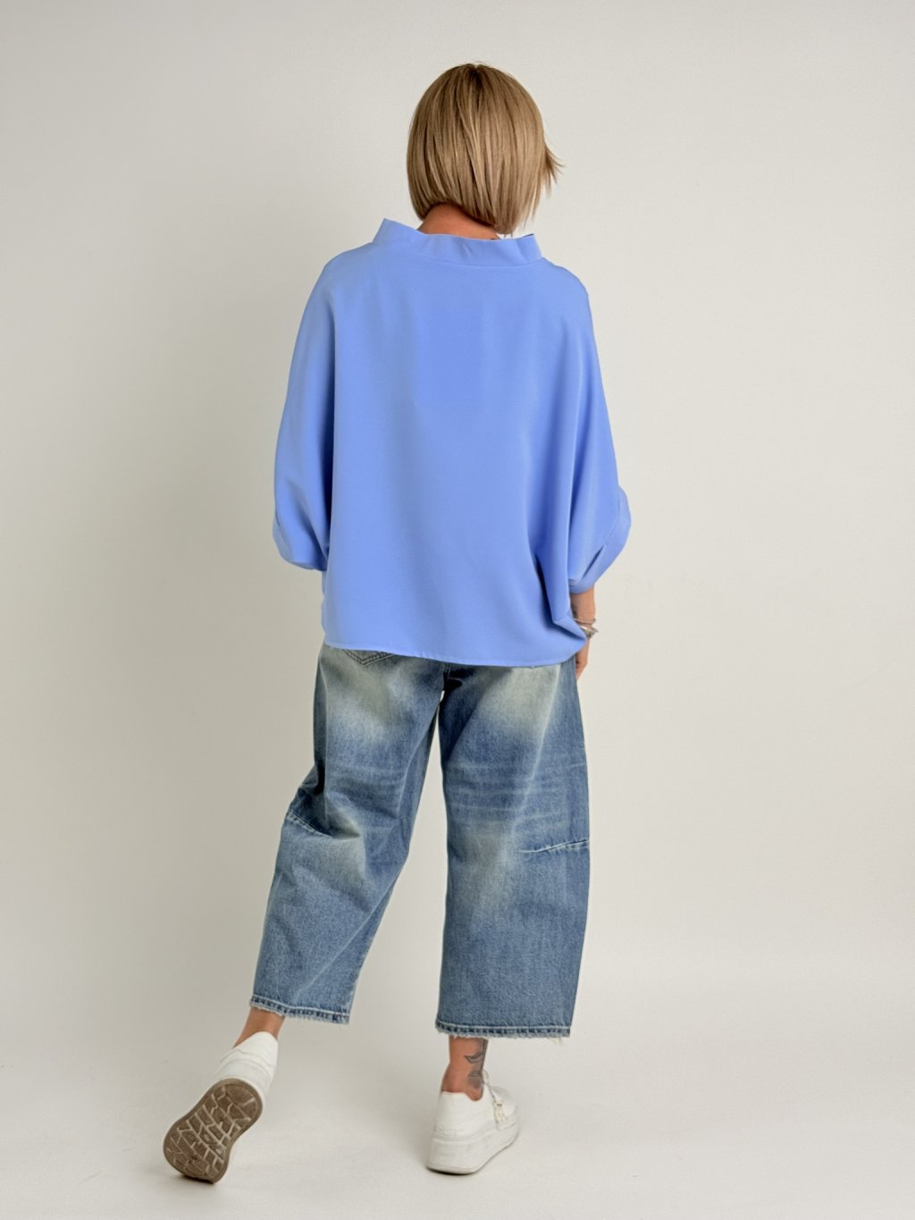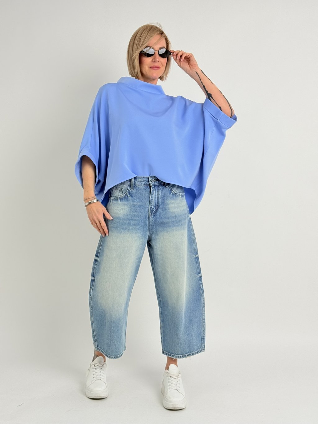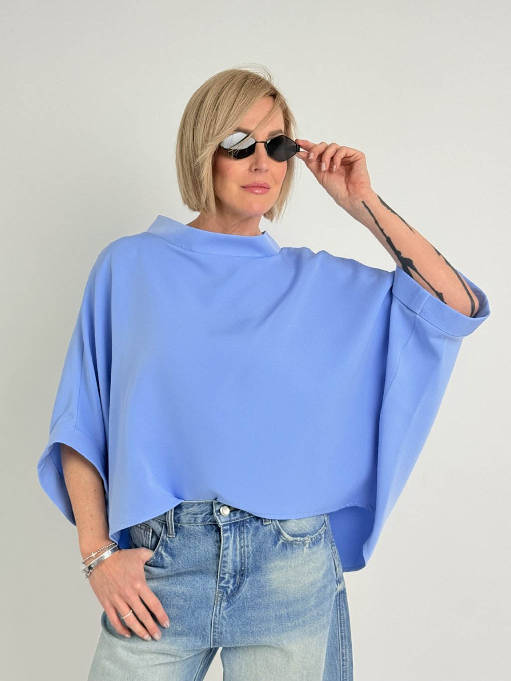 Luxusní tunika v netopýřím střihu s širokým stojáčkem. Vhodná na vrstvení.