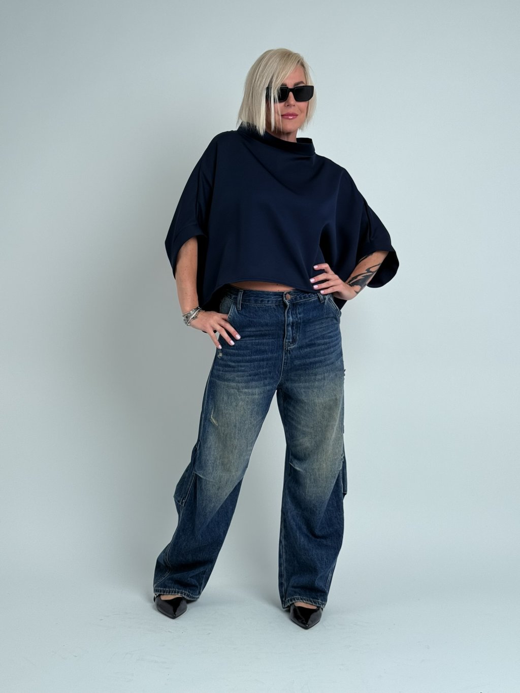 Luxusní tunika v netopýřím střihu s širokým stojáčkem. Vhodná na vrstvení.